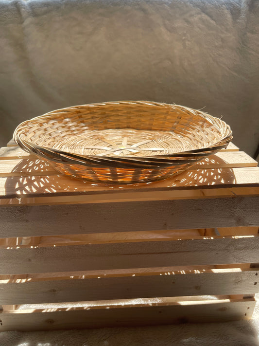 Large Round Bamboo Basket Tray