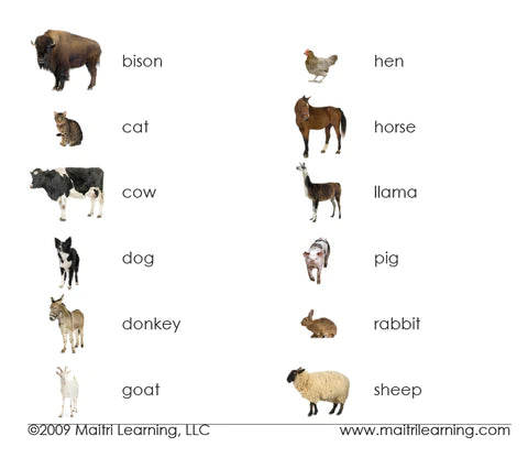 Sold outFarm Animals 3-Part Language Cards